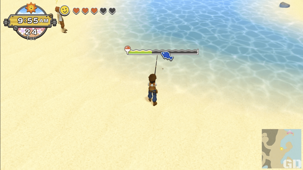 The mini games for fishing are simple in all games that have it. Animal Crossing: New Horizons is again the special child of gameplay where you simply need to click a spot to catch a fish.