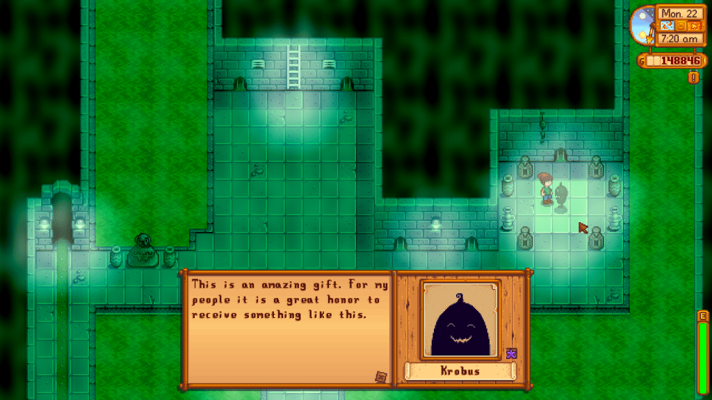 Now, this is the reason why I decided to compare these games to begin with. And just like with combat, Stardew Valley takes its silver medal here for me. Surely, Animal Crossing: New Horizons has got many wonderful characters to talk to and Harvest Moon: One World is trying to present as an RPG but still, it’s the simplicity and sincerity of Stardew Valley that make its characters stand out. They are distinct and can react differently on your words and gifts. You can also share some special moments with them, but most importantly you can live with Krobus. And, yes, I’m totally based on this one. I won’t hide it.