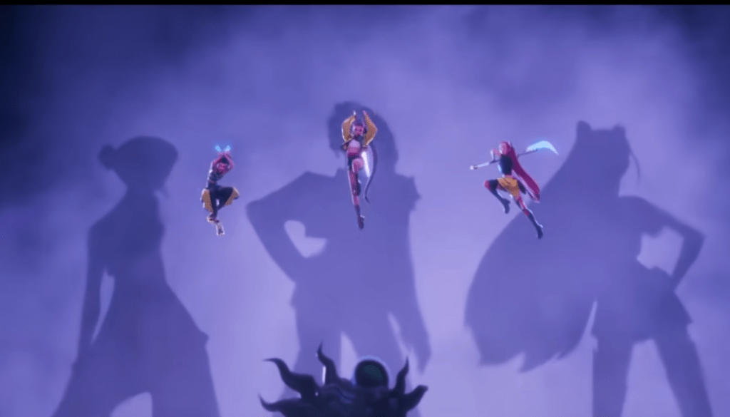 The story follows The Huntr/x, an extremely popular kpop group which consists of Rumi, Mira, and Zoey. Yet little do their fans know is that with their songs the girls are also fighting demons and protect the world from misery. However when the team got to close to the goal of sealing the demon away forever, one cunning demon came up with a plan to foil Huntr/x’s goal by creating a demon boy band and weaken the source of their power – their loyal fans.
