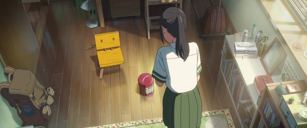 The action starts when Suzume encounters a young man on her way to school who was searching for an abandoned hot springs resort in the area. Intrigued by the location in question, Suzume decides to go there and eventually find a door which leads to a very beautiful hill with a marvelous starry sky. However, she is unable to actually go to that hill, only look at it through the doorframe. Creeped out by the unnatural scenery, she decides to go away, back to school.